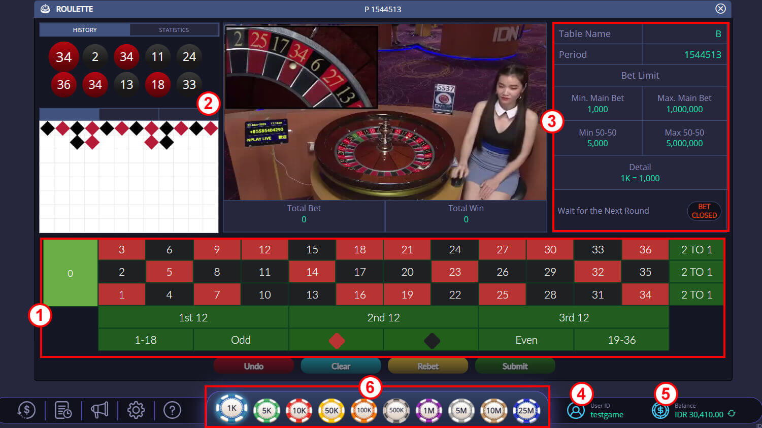 6. Chips taruhan. 1K = IDR 1.000