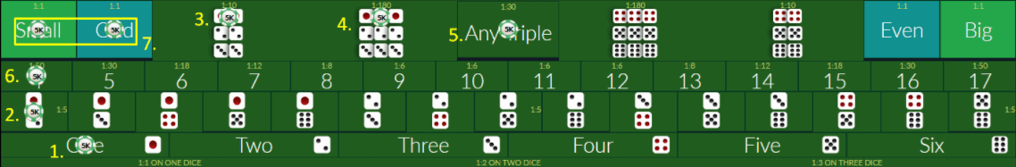 2. Setelah waktu betting ditutup, dealer akan melempar dadu dan hasil yang muncul dari 3 buah dadu menjadi hasil permainan